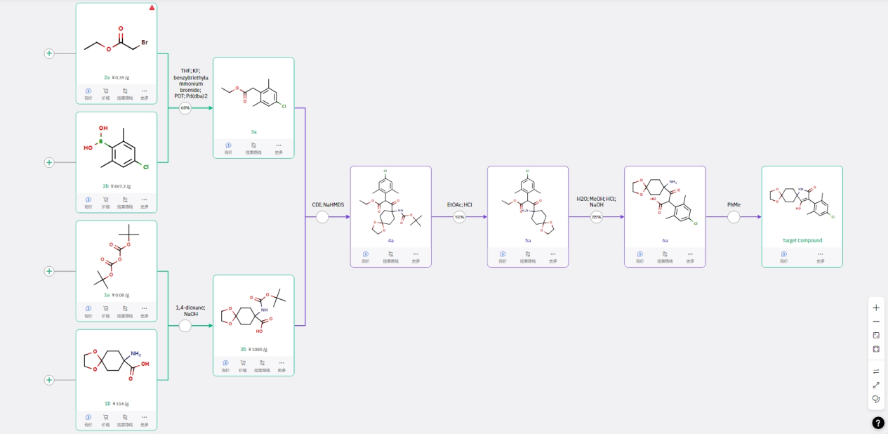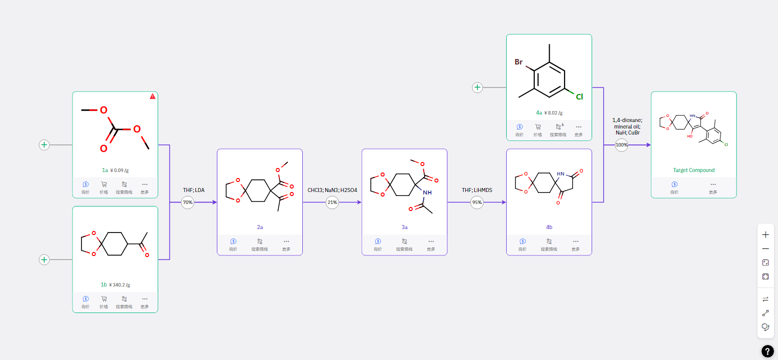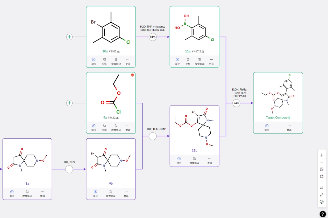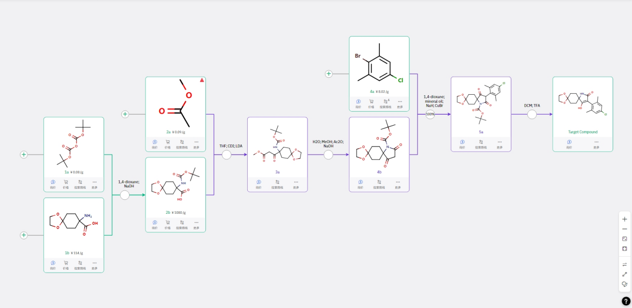 从螺环季酮酸类到特特拉姆酸类,ChemAIRS 以智能算法打破传统合成路线的局限,为新型农药分子提供 “定制化” 合成方案。通过通观全局或调整中间为原料,可减少合成步骤,降低生产成本,更助力绿色、高效农药加速落地,为农业可持续发展注入科技动能。未来,随着 AI 与农业科技的深度融合,更多创新农药将通过智能合成技术走向市场,守护作物健康,保障粮食安全,推动农业进入 “高效、环保、智能” 的新时代!