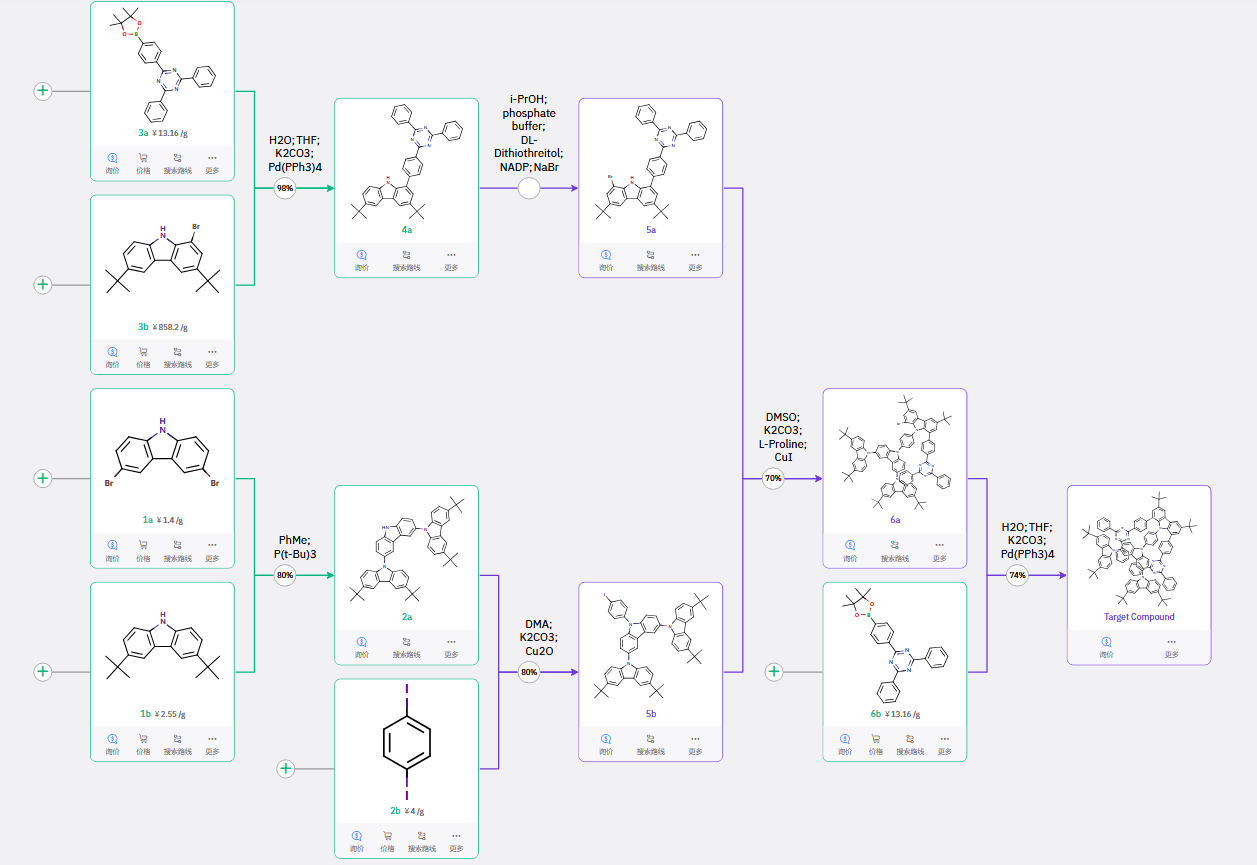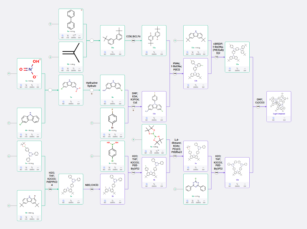 这些路线从简单易得的原料出发,遵循官能团兼容性、反应步骤合理性等内在逻辑,最终高效合成目标产物。