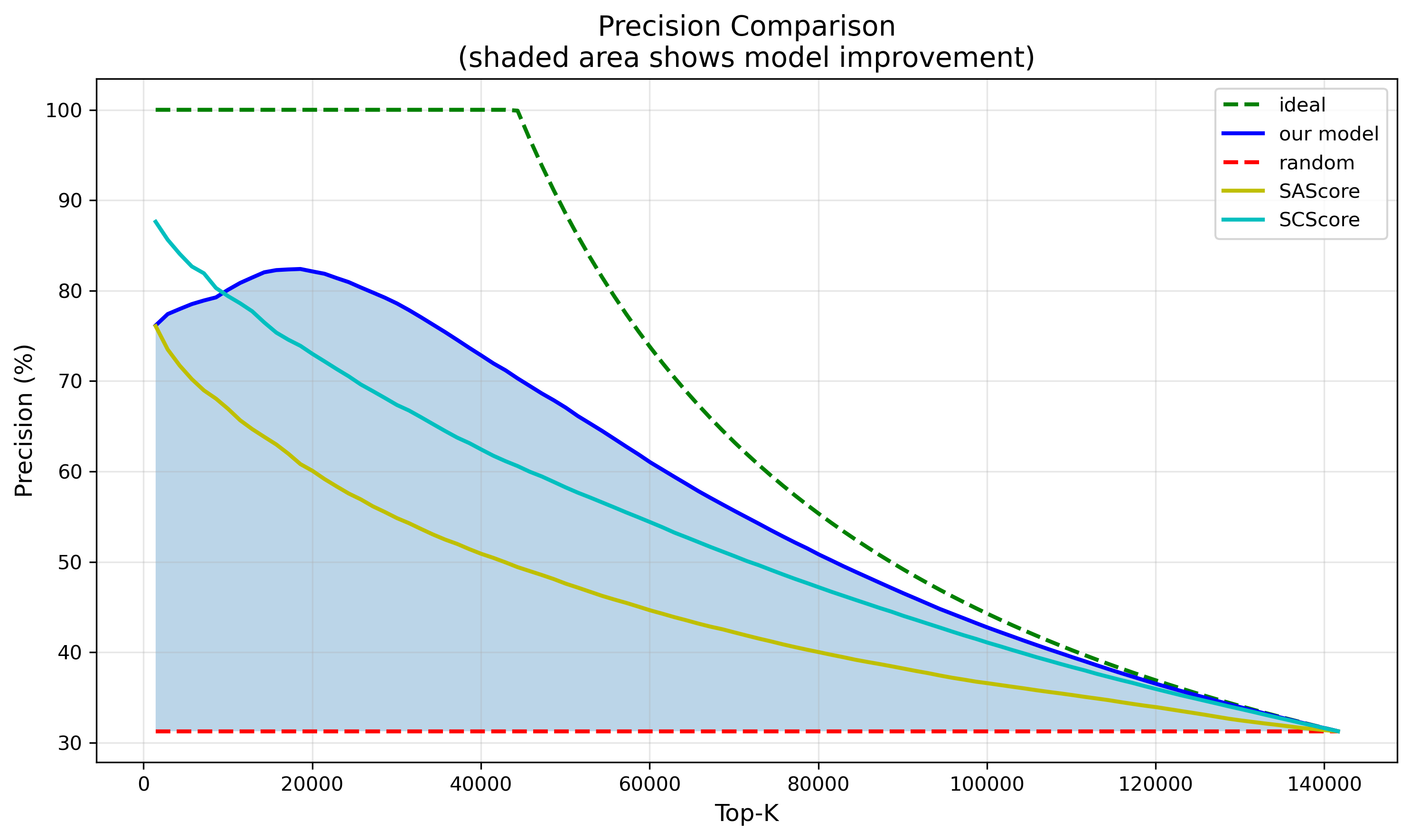 再看更贴近实际应用的虚拟筛选场景。我们筛选 2 万个分子做后续的深入分析,结果: